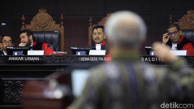 Sidang MK (Grandyos Zafna/detikcom)Jakarta -Tim aturan Prabowo Subianto-Sandiaga Uno mencecar Prof Marsudi Wahyu Kisworo, mahir yang dihadirkan KPU dalam persidangan lanjutan somasi pilpres di Mahkamah Konstitusi (MK). Hakim MK hingga menegur tim Prabowo alasannya pertanyaan yang diajukan tidak relevan dengan keahlian ahli.