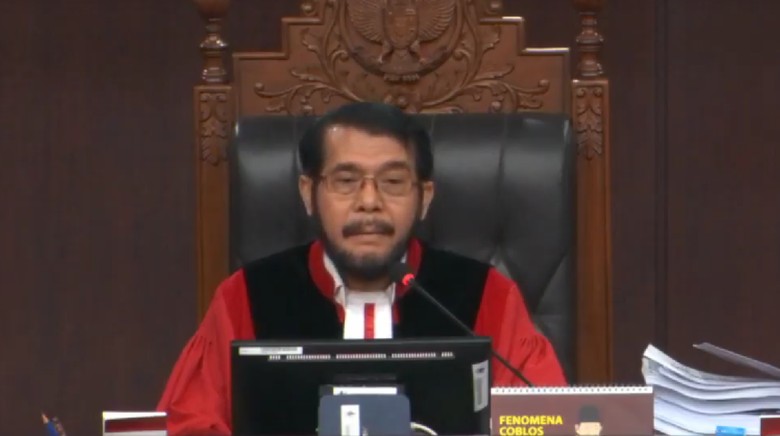 Foto: Ketua MK Anwar Usman / Youtube Mahkamah KonstitusiJakarta -Majelis hakim Mahkamah Konstitusi (MK) memutuskan saksi dari kubu Prabowo-Sandiaga Uno berjumlah 14 orang. Ada 2 saksi yang ditarik pihak Prabowo-Sandi yakni Mulyono dan Suwono.